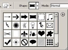 Instrumentul Custom Shape Tool ofera utilizatorului aplicatiei posibilitatea de a alege dintre mai multe forme prestabilite. Exista o galerie in bara de optiuni cu aceste forme.