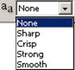 Bara de optiuni specifice acestui instrument ofera utilizatorului posibilitatea de a stabili tipul fontului care va fi utilizat, marimea acestuia, tipul fontului (normal, inclinat, ingrosat, ingrosat si inclinat), calitatea vizualizarii textului, aranjarea textului (filat dreapta, centru, stanga), alegerea culorii textului, asezarea textului in diferite forme.