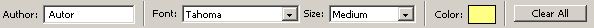 Bara de proprietati a acestui instrument permite schimbarea fontului si marimii de scriere a acestuia dar si culoarea notitei.