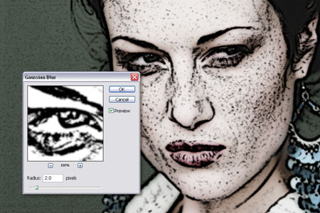 In acest punct, ai ceva care seamana puternic cu un desen care accentueaza contururile fotografiei. Efectul este OK, dar pentru gustul meu, el tot arata prea mult cu un efect prestabilit din Photoshop. Urmatoarea chestie, iti va arata cum sa realizezi un efect de hasurare tipic tipografiei. Vei fi uimit cand vei vedea cum poti sa ajustezi convergenta hasurii si sa adaugi un layer texturat.