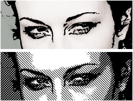 Exemplu: efectul de hasurare incrucisata seamana cu o gravura mecanica.