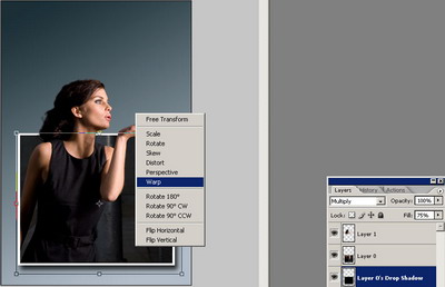 layer-ul nou creat (adica cel cu umbra) si apasam Ctrl + T pentru a activa Free Transform Tool. Efectuam click