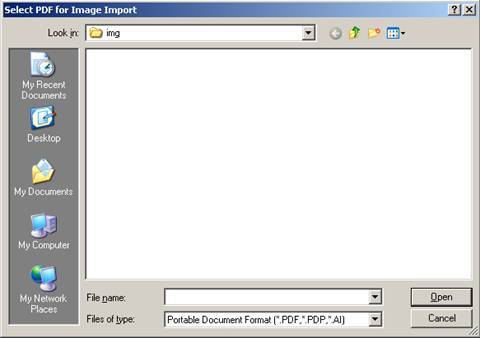 Prin accesarea acestei comenzi se va deschide o fereastra care va permite importarea unei imagini PDF.