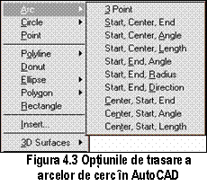 Figura 4.4 Exemple de trasare a unor arce de cerc prin diferite metode, în AutoCAD