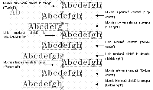 Figura 4.7 Moduri de aliniere pentru un text "single line" în raport cu un