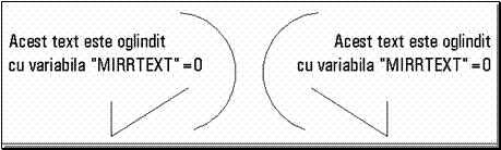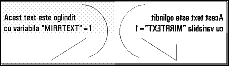 Comportarea textelor la operatii de oglindire efectuate prin comanda MIRROR este controlata prin variabila de sistem AutoCAD MIRRTEXT. Valoarea 1 conduce la oglindirea textelor (fig. 4.14 a), pe când valoarea 0 le pastreaza dispunerea initiala (fig. 4.14 b).