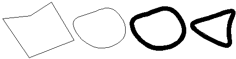 Poliliniile plane pot avea latime diferita de zero. Valoarea latimii este reglabila, prin optiunile "Width" sau "Halfwidth" ale comenzii PLINE. Latimea poate varia de-a lungul unei verigi, ca si de la o veriga la alta (fig. 4,15). În particular, latimea poate fi si nula (0).