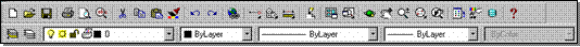 Doua dintre barele de instrumente sunt extrem de importante, avānd functii esentiale: este vorba despre "Standard toolbar" si "Object properties" (fig. 1.3 si fig. 1.1), adica bara de instrumente standard si bara de instrumente pentru proprietatile obiectelor; se recomanda ca acestea sa fie permanent prezente pe ecran. La instalarea AutoCAD, cele doua bare de instrumente sunt pozitionate la partea superioara a ferestrei de lucru, deasupra zonei grafice.