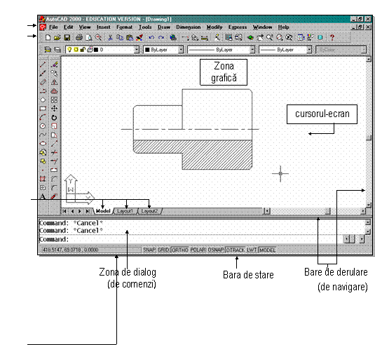 Figura 1.1 Configuratia ferestrei de lucru sub editorul de desenare din AutoCAD 2000