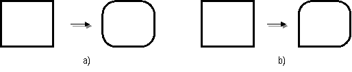 Figura 6.14 Racordare corecta (a) si respectiv incorecta (b) pe conturul unei polilinii închise; în cel de al doilea caz, polilinia initiala nu a fost închisa automat, fapt pentru care AutoCAD nu rotunjeste ultimul colt