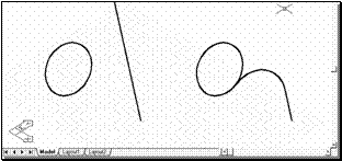 Figura 14.49 Aplicarea comenzii FILLET pe doua obiecte coplanare nesituate in planul XY al sistemului curent de coordonate