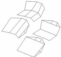 Cea mai simpla suprafata spatiala este fateta 3D, creata de comanda 3DFACE. Comanda genereaza un obiect simplu de forma unui patrulater spatial (fig. 14.45). Sunt solicitate pozitiile varfurilor, programul unindu‑le in ordinea indicata. Comanda permite crearea a oricat de multe astfel de obiecte, varfurile 3 si 4 ale fatetei actuale devenind varfurile 1 si 2 ale celei care urmeaza. Un raspuns nul pentru cel de‑al patrulea varf conduce la crearea unui triunghi.