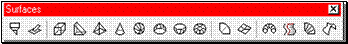 Comenzile pentru crearea suprafetelor 3D au alocata o bara de instrumente proprie, denumita "Surfaces" (fig. 14.37).