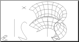 Comanda EDGESURF creaza retele 3dmesh de forma mai complicata, care aproximeaza suprafete Coons. Aceste suprafete sunt marginite de 4 curbe ce se ating doua cate doua pe capete (fig. 14.44). Curbele de margine pot fi orice curbe spatiale. Prima curba selectata determina directia M de generare (cu variabila asociata SURFTAB1). Cele doua curbe care o ating pe prima definesc directia N de generare (cu variabila asociataSURFTAB2).