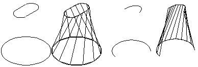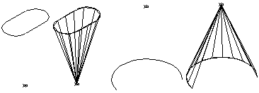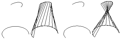 Figura 14.41 Suprafete rulate pentru cazul cand una din curbele de definitie este un punct