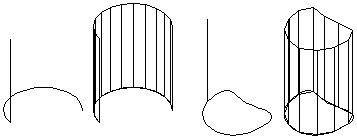 Figura14.43 Suprafete tabulate generate pe diferite curbe directoare