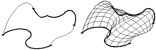 Figura 14.42 Forma suprafetelor rulate, in functie de punctele de selectare a curbelor de definitie
