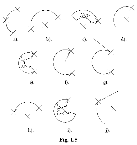 Start, End permite definirea punctului de inceput si de sfarsit al arcului, iar apoi unghiul, raza, directia sau centrul (fig. 1.5 - e, f, g, h).