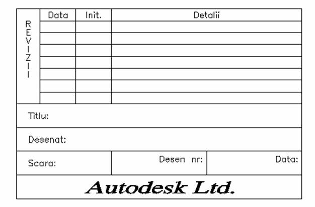 11. Selectati comanda Text optiunea Single Text din meniul bara Draw sau tastati in linia de comanda "dt" si introduceti punctul de aliniere de coordonate 15,85. Lasati înaltimea la 2.5 si unghiul de rotire la 270 si apoi tastati textul "REVIZII"pe ecran obtinându-se o imagine similara celei din figura 5.