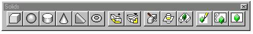 Bara cu instrumente solide: icon-ul (fig. 8, poz. 4) Meniul: DRAW Solids Cone Command: CONE Elliptical/<Center point>< > q Center point centrul cercului bazei conului Diameter/<Radius> Apex/<Height> Height înaltimea conului Apex specificarea unui punct ce reprezinta vârful conului. q Elliptical - se creaza un con cu baza o elipsa <Axis endpoint>/Center: Axis endpoint permite crearea bazei eliptice Axis endpoint 2: Other axis distance: se indica un punct ce (reprezinta) determina ce-a de-a doua axa a elipsei Apex/<Height> Center se indica centrul elipsei Center of ellipse < > Axis endpoint: punct ce indica sfârsitul primei semiaxe Other axis distance: Apex/<Height> |