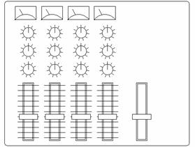 Privind desenul tinta se pot observa cāte un potentiometru pentru un singur canal al mixerului si doua auxiliare pentru controlul semnalului de iesire al mixerului. Toate aceste entitati se obtin prin repetarea unui singur volumetru ce va fi desenat.