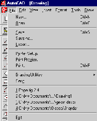 Bara de meniuri. Bara de meniuri derulante se afla sub bara de