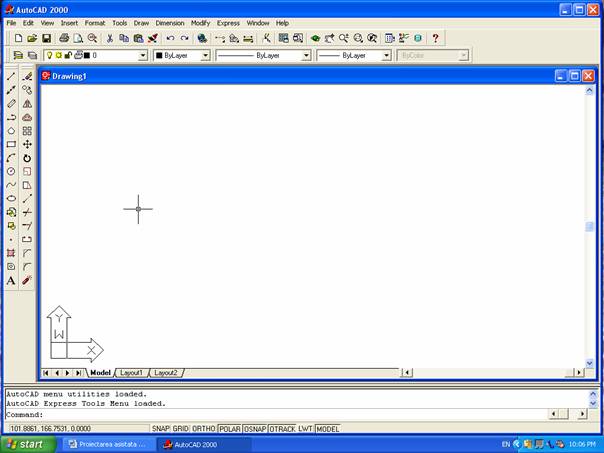 Ca orice program care ruleaza sub sistemul de operare Windows si AutoCAD-ul dupa lansare ve deschide o fereastra proprie, cu urmatoarele componente: