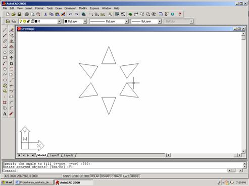 o Introducerea valorii unghiului de rotire (in grade), optiunea implicita sau tastarea literei R pentru optiunea Reference