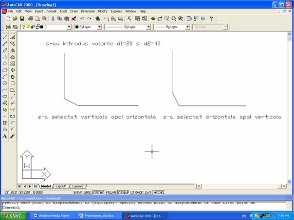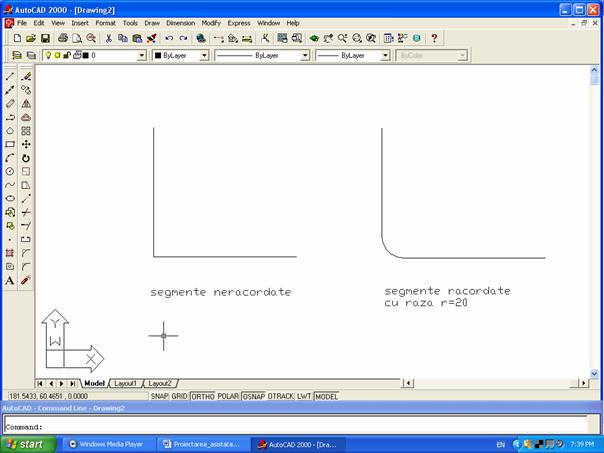 o Daca se executa prima racordare in desenul respectiv sau se modifica raza de racordare se alege optiunea Radius (tastarea literei R)