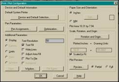 In vederea plotarii unui desen se realizeaza mai intai configurarea corecta a programului AutoCAD pentru a accepta Plotterul si imprimanta.