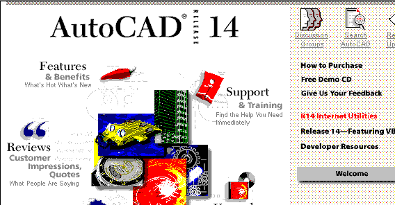 What s New - Aceasta optiune din meniul Help va pune la dispozitie o lista interactiva cuprinzând noile caracteristici din AutoCAD R14. Atunci când selectati What s New din meniul Help, va fi afisat un ecran cu listarea noilor caracteristici. Plasând cursorul peste una dintre acestea, va fi afisat un text box continând o scurta descriere a perfectionarii AutoCAD-ului în acest sens. Selectarea unei caracteristici va afisa pe ecran noile posibilitati referitoare la aceasta. Daca alegeti una din aceste posibilitati, va fi afisat un ecran animat, continând text box-uri care prezinta modul de lucru al acesteia.