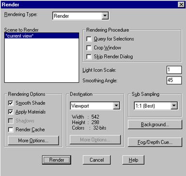 Din meniul View, selectati Render, si apoi Render. Va fi afisata caseta de dialog Render