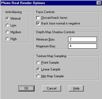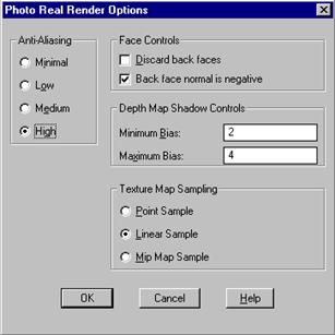 Caseta de dialog Photo Real Render Options este afisata, asa cum se prezinta în figura