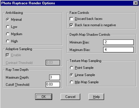 afisa caseta de dialog Raytrace Render Options, care arata ca în figura urmatoare:
