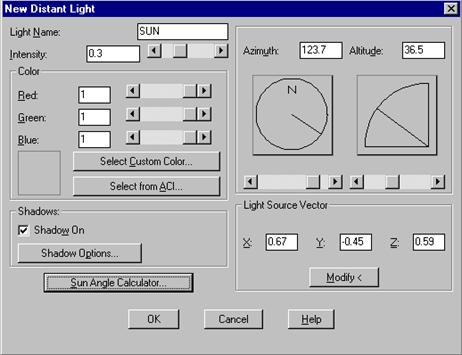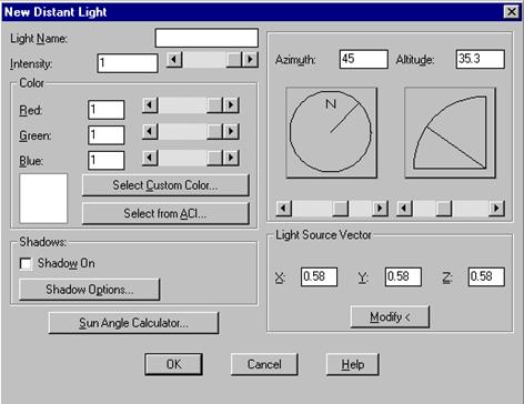 În aceasta caseta de dialog, din lista desfasurabila Lights, selectati Distant Light, apoi apasati butonul New. Va fi afisata caseta de dialog New Distant Light