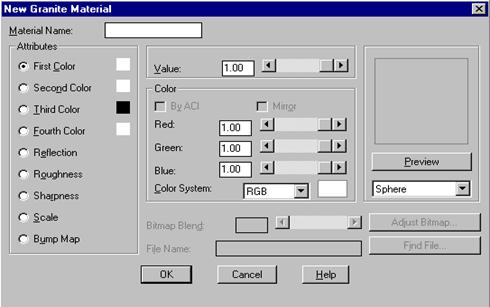 Mai multe optiuni de creare a unor noi materiale - Exista acum casete speciale de dialog pentru crearea unor variante de granit, marmura si materiale lemnoase, cu atribute potrivite pentru fiecare dintre aceste materiale.