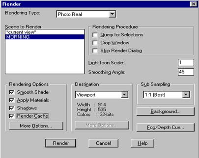 Fig 7- Caseta de dialog Photo Real Render Options completata