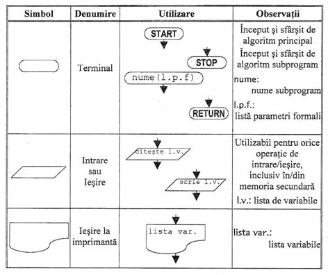 algoritmilor prin aceasta metoda presupune utilizarea unor simboluri grafice numite