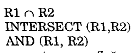 7. Intersectia. Reprezinta o operatie a AR definita pe doua relatii: R1 si R2 ambele cu aceeasi schema, operatie care consta din construirea unei noi relatii R3, cu schema identica cu a operanzilor si cu extensia formata din tuplurile comune lui R1 si R2.
