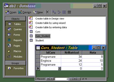 Salvati tabela Curs_Student si apoi treceti în modul Datasheet View pentru a testa functionarea acesteia.