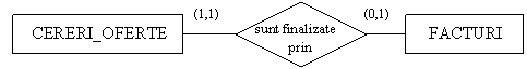 Exemplu: Exista o asociere între entitatile CERERI_OFERTE si FACTURI deoarece facturile reprezinta finalizarea unei cereri oferte. Aceasta asociere se reprezinta ca în figura de mai jos.