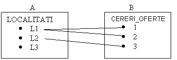 Fig. 2.6. Asociere de unu la mai multi între entitatile LOCALITĂŢI si CERERI_OFERTE