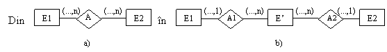 Fig. 2.9. Transformarea unei asocieri de tipul multi la multi (a) în asocieri de tipul unu la multi (b)
