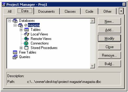 In aplicatia Evidenta_magazie[2] s-a creeat baza de date denumita magazia, pentru a organiza intrarile si iesirile de materiale. (Figura