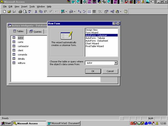 De aici selectam <Autoform Columnar> si <OK>. Apoi apare: