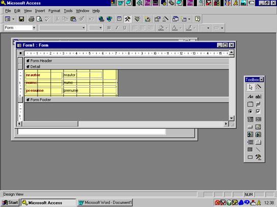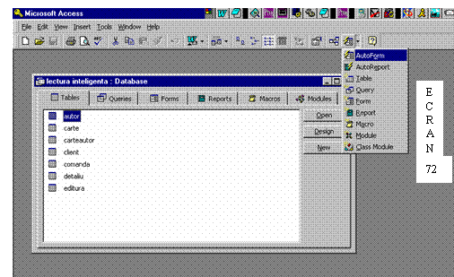 Crearea unui formular simplu. Un formular poate fi creat pe baza unei tabele reale sau fictive (cerere). Sa selectam, pentru un exemplu simplu, tabela ‘autor’ in dosarul bazei de date.