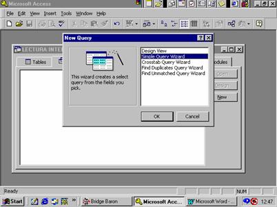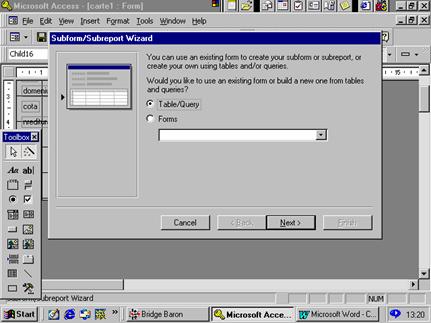 Selectam aici ‘Table/Query’ si apasam <Next>. Se obtine: