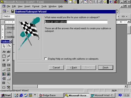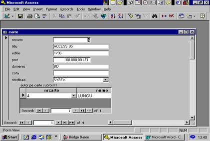 In cadrul unui formular putem crea un nou formular. De exmplu in formularul ‘carte1’ un subformular pentru introducerea autorului.