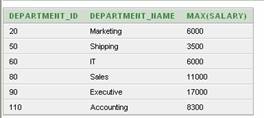 SELECT department_id, department_name, max(salary)