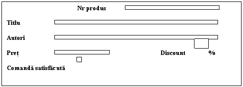 Pe baza unui catalog clientul comanda una sau mai multe carti. Cand cartea este disponibila (se afla in depozit) este trimisa la toti cei care au comandat-o si in casuta Comanda satisfacuta se marcheaza un X .